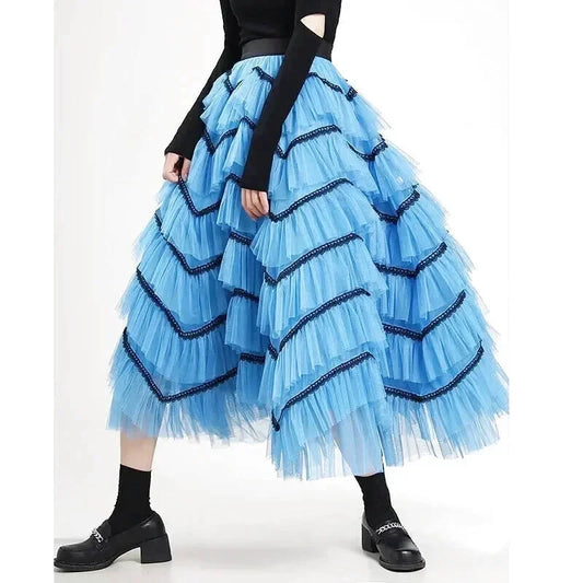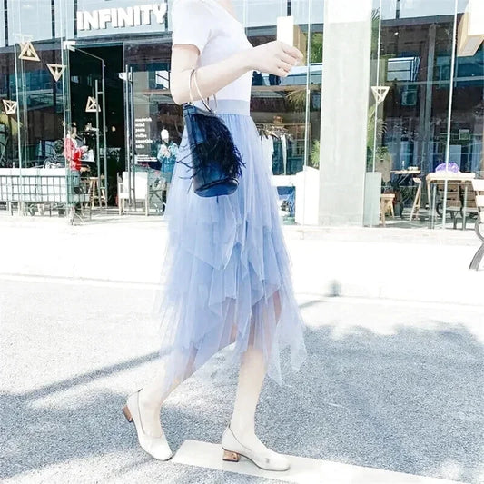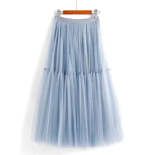Jupe Mi-longue Tulle Fendue Bleu Ciel
